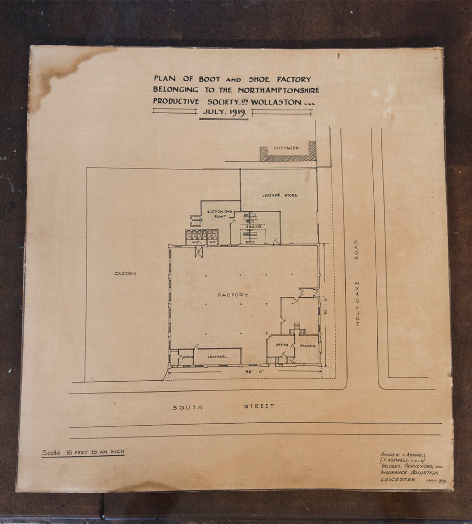 In an attempt to impose some regularity to their income, five men living in the village of Wollaston banded together to form a co-operative (a company owned and run by the people working in it) called the Northamptonshire Productive Society (NPS). Known locally as ‘the Duffers’ their premises was a dove house in Thrift Street.
